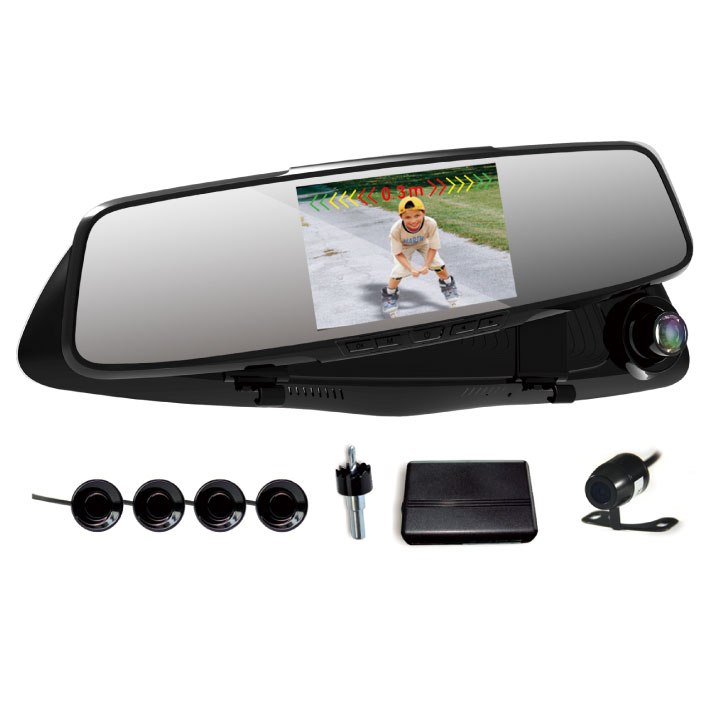 倒車(chē)雷達與記錄儀功能(néng)二合一(yī);4.3"LCD顯示屏,有(yǒu)效像素720P;支持可(kě)視(shì)倒車(chē),顯示屏3色LED光(guāng)條分(fēn)級提示障礙物(wù)距離(lí);循環錄影(yǐng),一(yī)鍵拍(pāi)照(zhào);3軸重力感應,碰撞鎖影(yǐng)。
